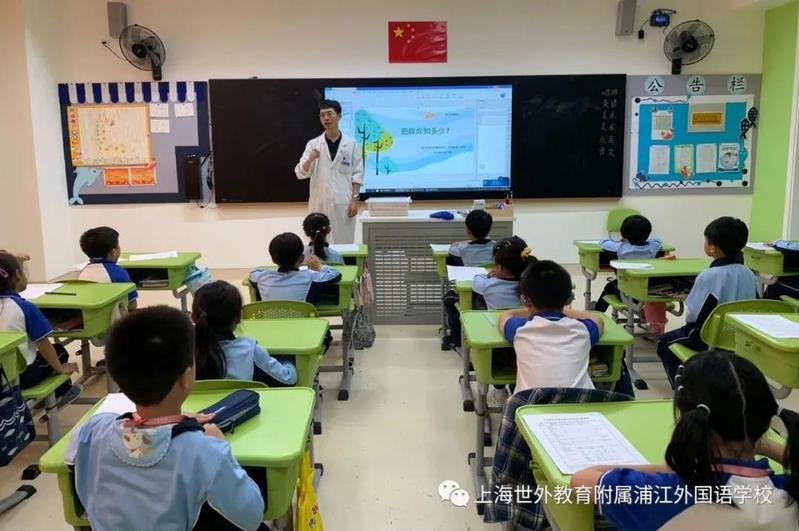 为了进一步加强我校卫生工作,以多种途径提高青少儿的健康安全意识,让他们了解简单的卫生常识,培养良好的卫生习惯,9月27日下午,我校还邀请了浦江卫生服务中心的仲伟医生给中小学的学生分别上了健康课。