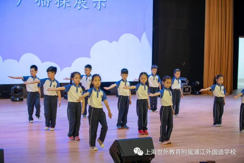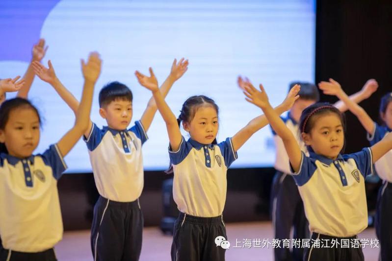 作为刚入学的一年级新生代表,在舞台上齐整、自信地展示第三套广播体操《希望风帆》的时候,我们似乎看到了世外浦江“芬雅”学子的红日初升。