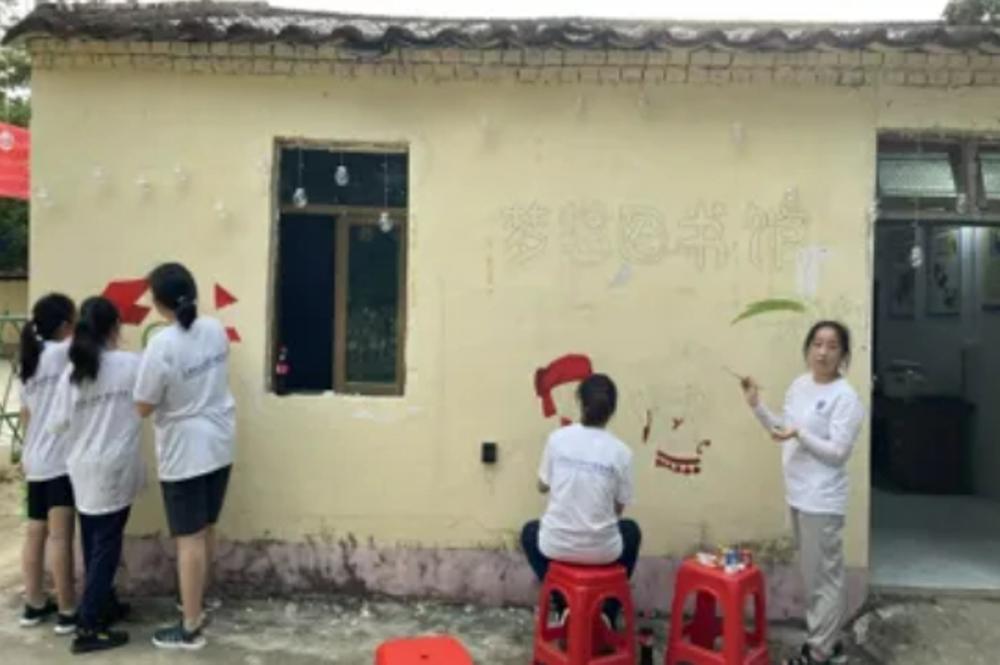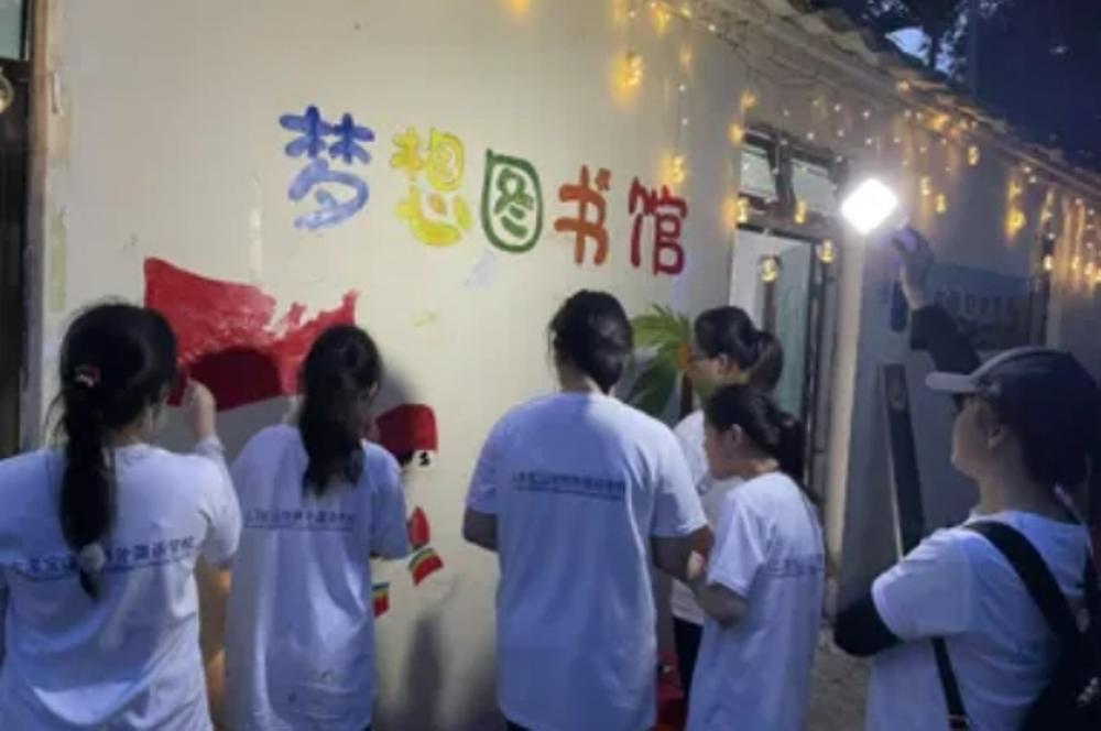 第四组家长和老师们着眼于未来,他们一到目的地就开始思考怎样能在活动结束后留下一些痕迹。考虑到当地孩子已经有了不少捐赠的课外书籍,但缺少一个安静阅读的环境,于是第四组的目标就是建立一间“梦想图书馆”。孩子们组装书架、粘贴墙纸,图书编码、手绘外墙,不到一周的时间便将梦想图书馆建好了。