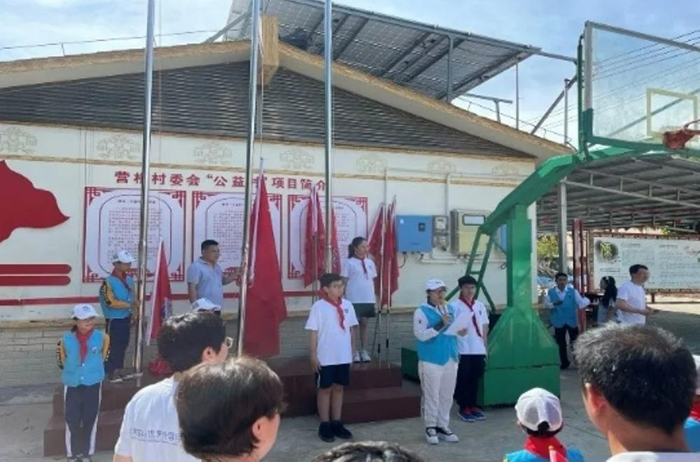 第一组的家长张笑言爸爸、汪翎予爸爸和张笑言一同分享了他们在第一周做的破冰活动。他们和当地的孩子们一同举行升旗仪式、一起完成暑假作业,组织了赠书与学琴活动等。