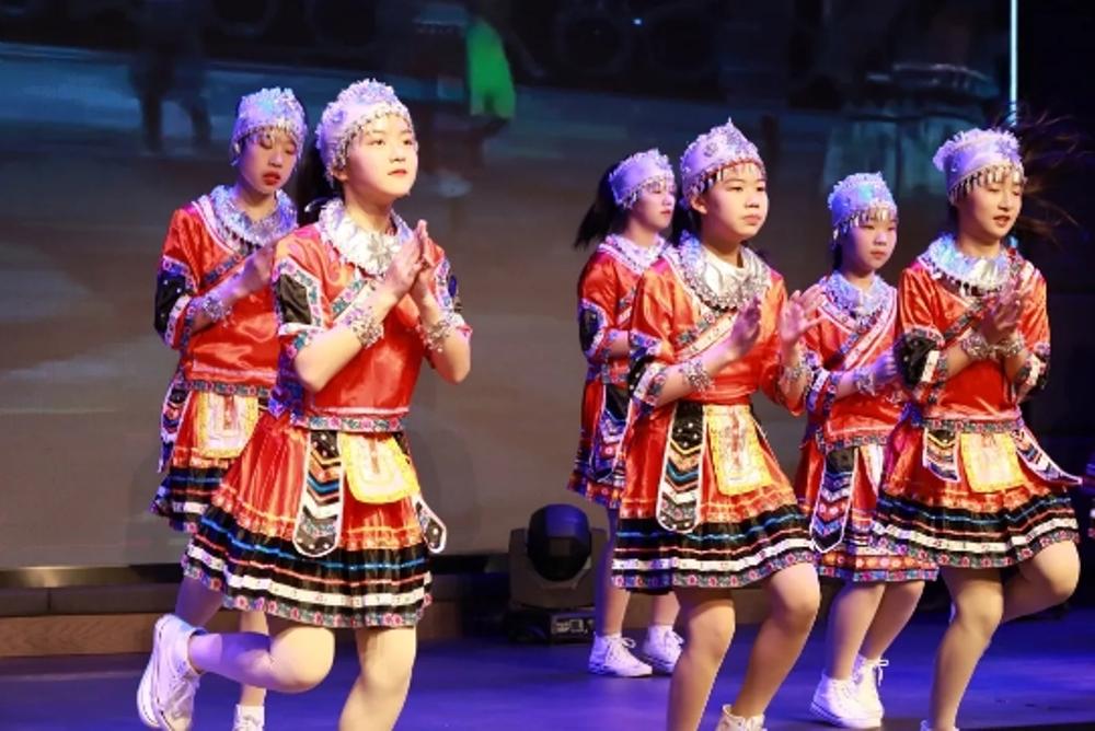 站在相隔2000多公里的土地上,共同跳起一支舞、共同唱起一首歌,又会给那些时光带来怎样的余味呢?接下来,七(4)班的同学们为我们带来海南当地民族特色舞蹈表演。